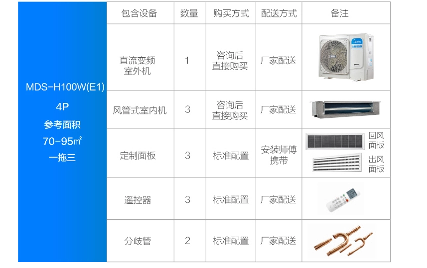 美的 一拖三變頻一級能效 多聯(lián)風(fēng)管機(jī) 4匹 家用中央空調(diào) MDS-H100W(E1)